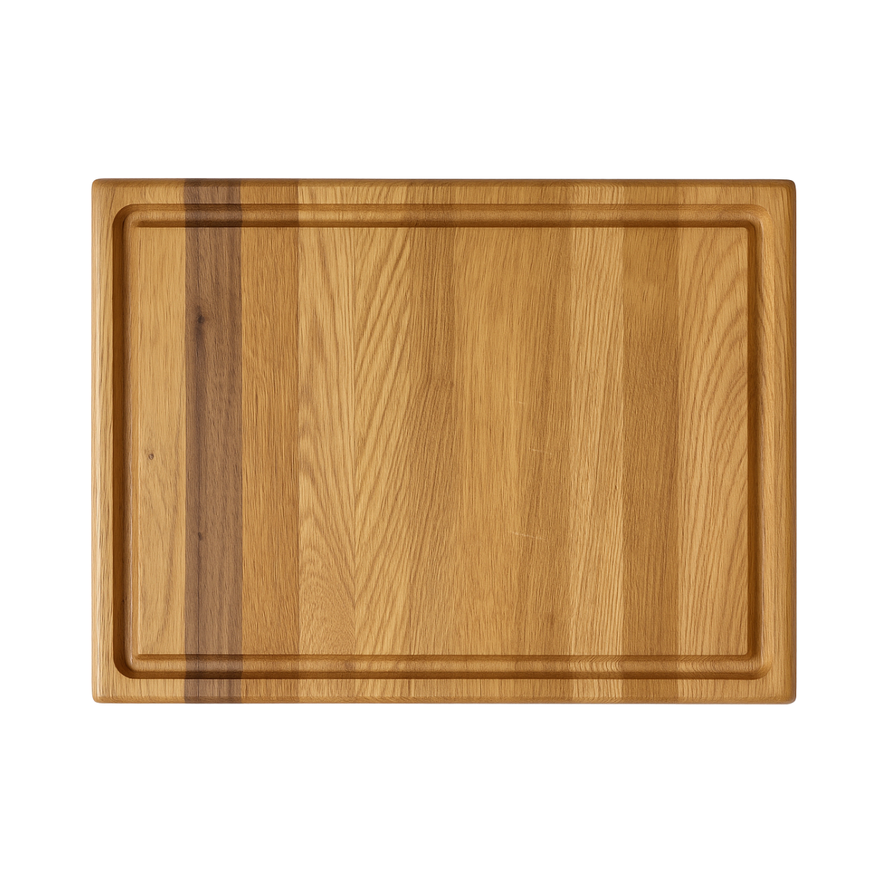 Håndlavet skærebræt i egetræ med valnødsdetalje – laves på bestilling